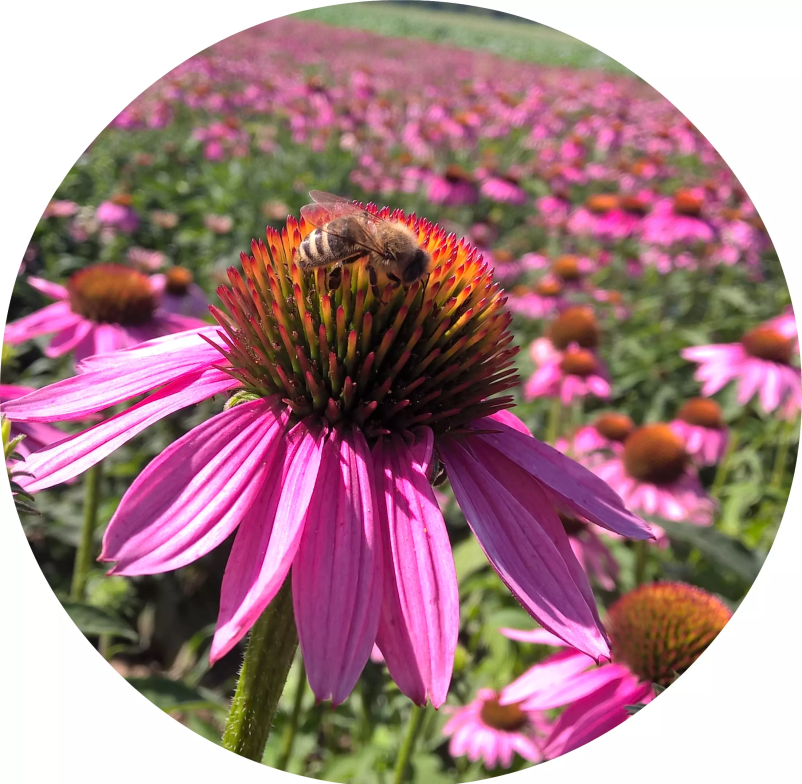 Ameriški slamnik na naši kmetiji pridelujemo že 20 let. Večino pridelka odprodamo farmacevtskim podjetjem, manjši del pa pridelamo v končne izdelke, kot so ameriški slamnik za otroke in zgoraj našteti izdelki.
