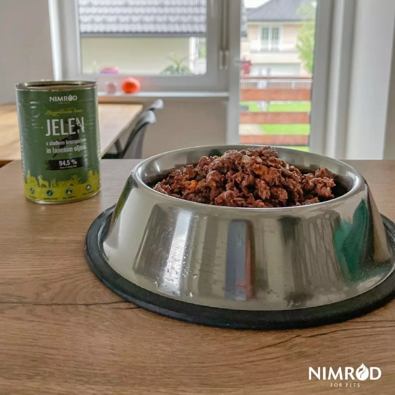 Surova pasja hrana Nimrod nima umetnih dodatkov, pripravljena pa je je izključno iz uplenjene divjadi.