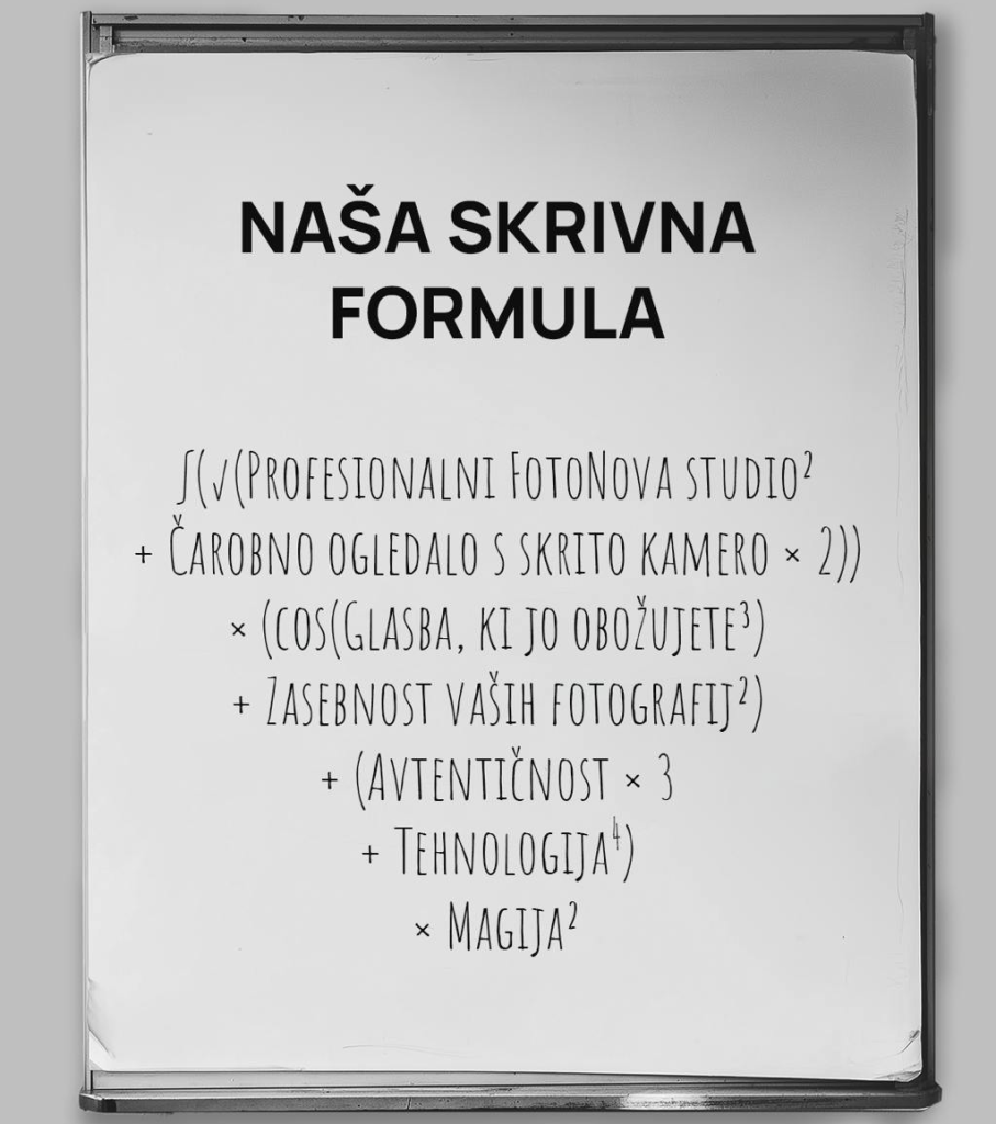 Na voljo so različni rekviziti in čisto belo ozadje, ki omogočajo ustvarjanje edinstvenih posnetkov. Fotografije prejmete v digitalni obliki, pripravljene za tisk, deljenje na družbenih omrežjih ali shranjevanje v družinski album.