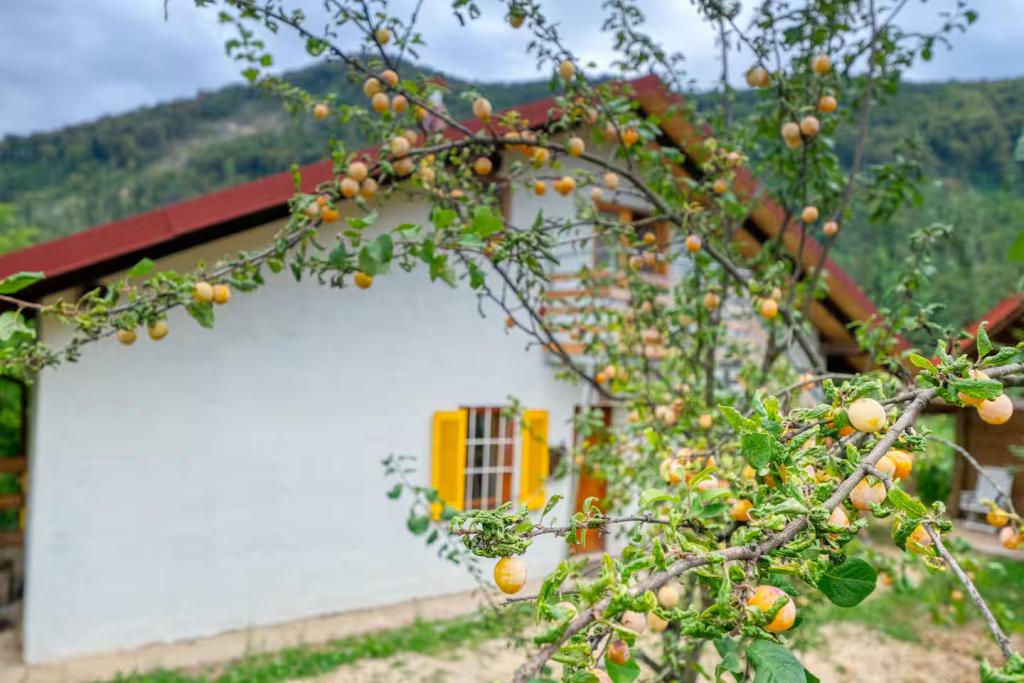 Guests arriving by car will appreciate the convenient parking available directly next to the house. The parking area is located under a walnut tree, providing natural shade during warm days.