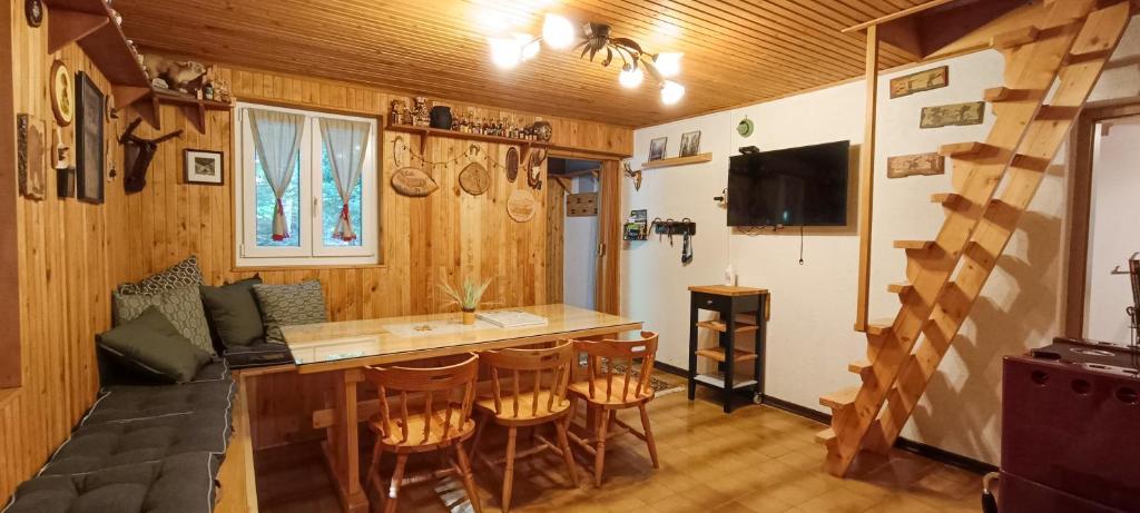 The holiday house accommodates up to 6 guests and provides everything needed for a practical and pleasant stay. Guests have access to free private parking, free Wi-Fi, and a fully equipped interior. The wooden furniture and rustic cabin atmosphere create a warm and natural feel, well suited for rest and stress relief.