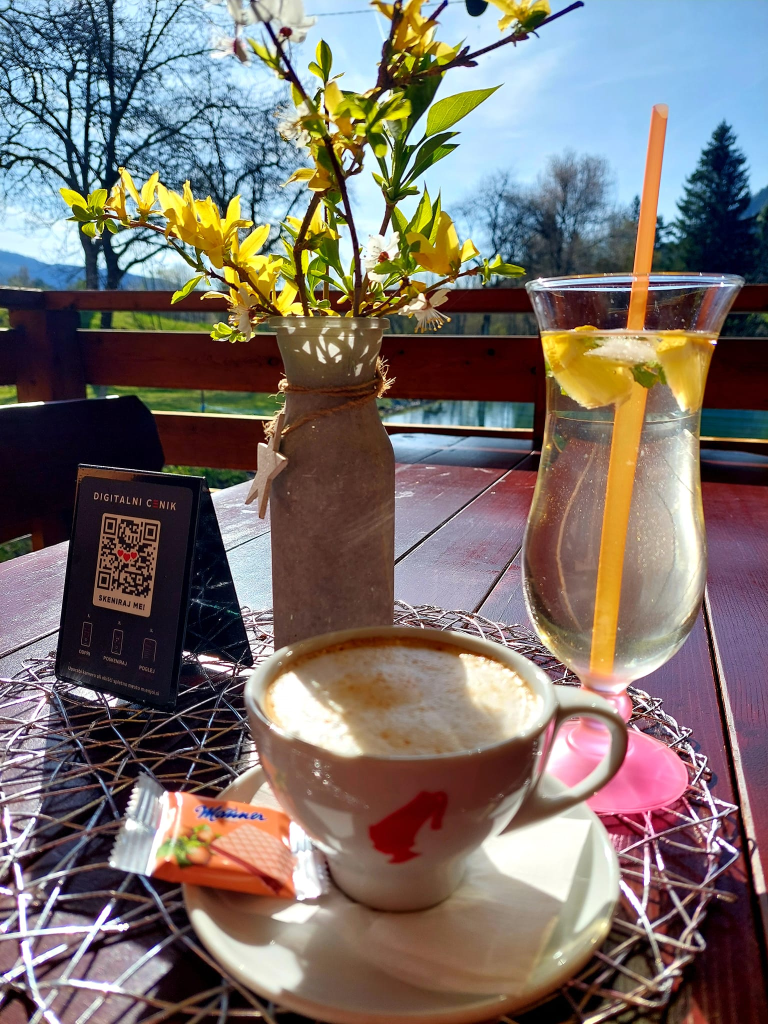 Naša okrepčevalnica se nahaja ob mirnem ribniku, ki s svojo spokojnostjo ponuja pravo oazo za vse ljubitelje narave. Medtem ko uživate na naši zasenčeni terasi, vas prevzamejo čudovit pogled na vodo, šumenje listov in svež zrak, ki poskrbijo za popoln oddih od vsakdanjega vrveža.