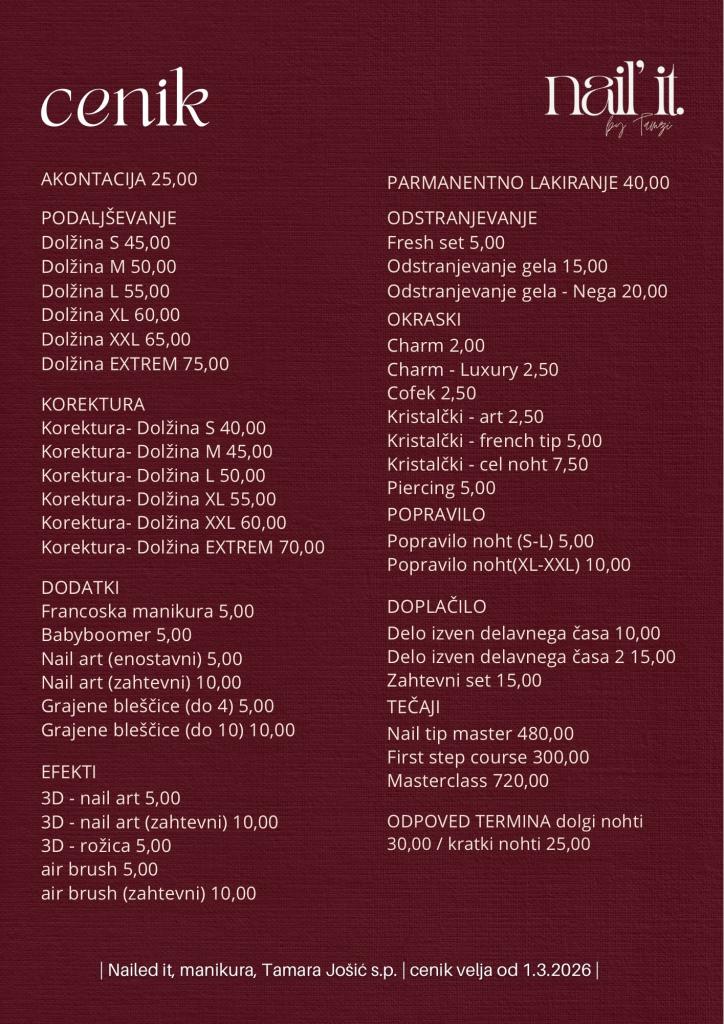 - oz. drugo oblikovanje nohtov po vaših željah.