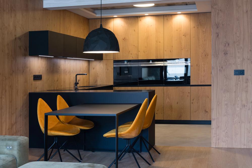 Pri kuhinjah posebno pozornost namenjamo praktični razporeditvi elementov. Upoštevamo postavitev aparatov, delovne površine in shranjevalne potrebe.