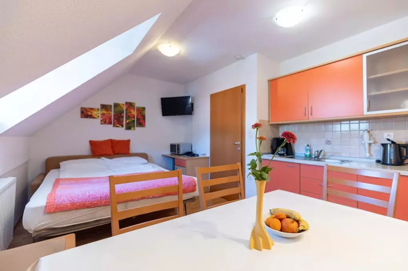 We truly are the best hotel in Škofja Loka, our guests can choose between renting a room or renting an apartment. There are three apartments available, and each of them provides accommodation for up to 6 people.