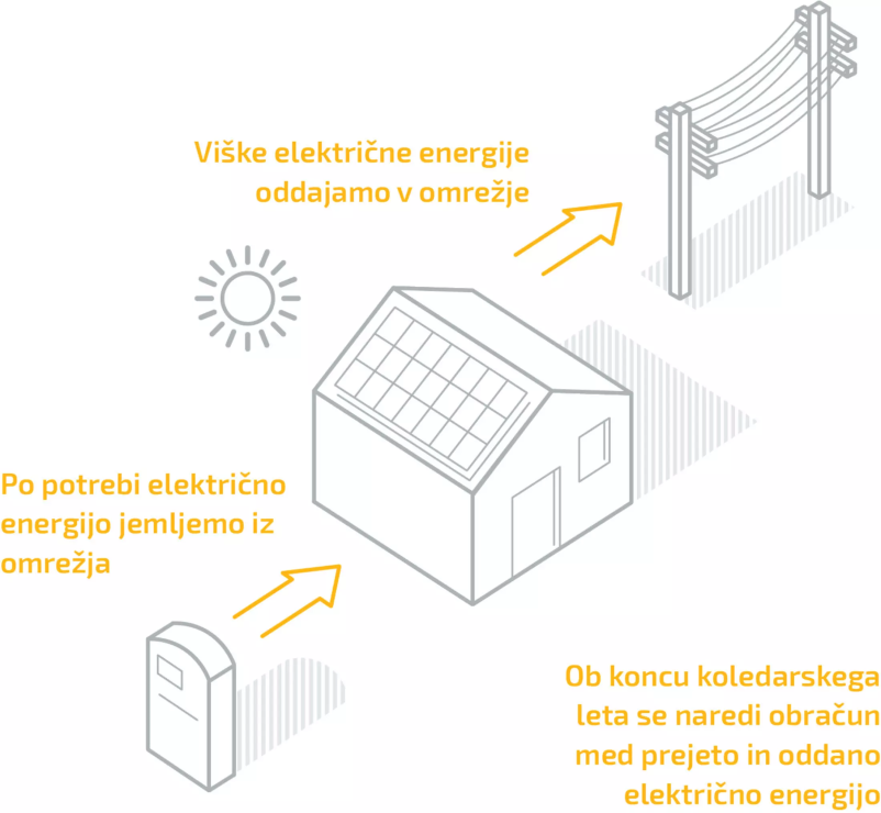 Višek energije se odda v omrežje neodplačno/brezplačno.