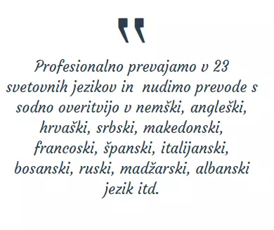 Vse naše storitve prevajanja in uradnih prevodov so opravljene izredno profesionalno, v roku, natančno in po konkurenčni ceni.