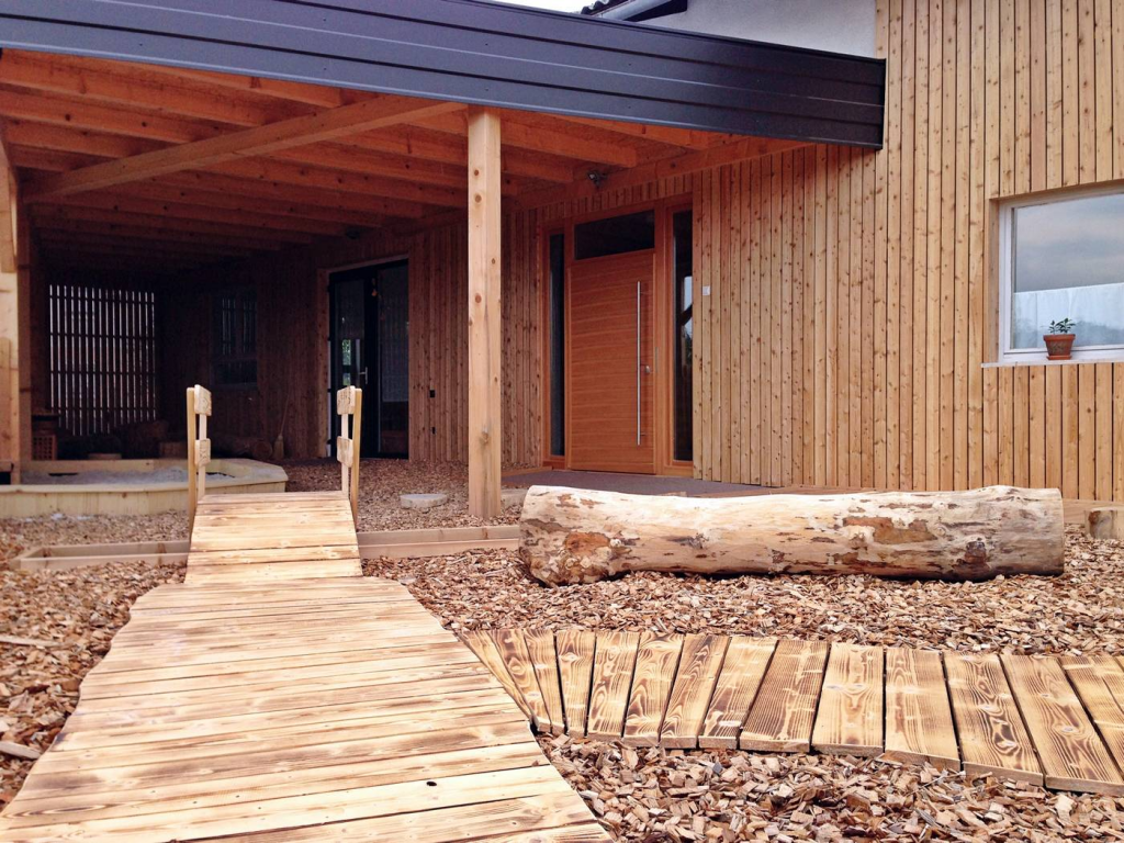 V zunanjosti waldorfskega zasebnega vrtca imamo mirno zunanje igrišče, katerega del je pokrit z nadstreškom, peskovnik in majhen vrtiček (kamor sadimo rastline in se posladkamo z jagodami in malinami).